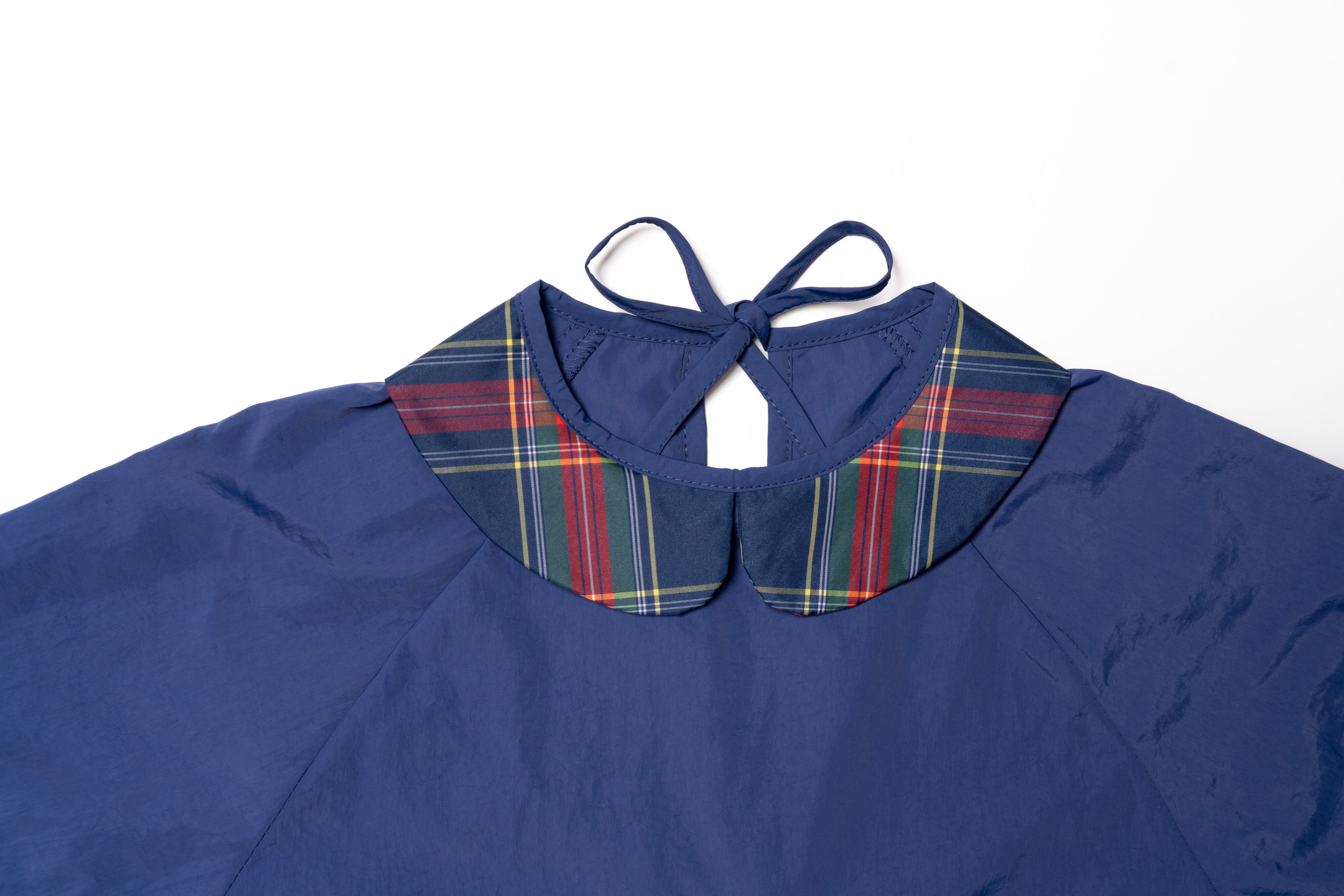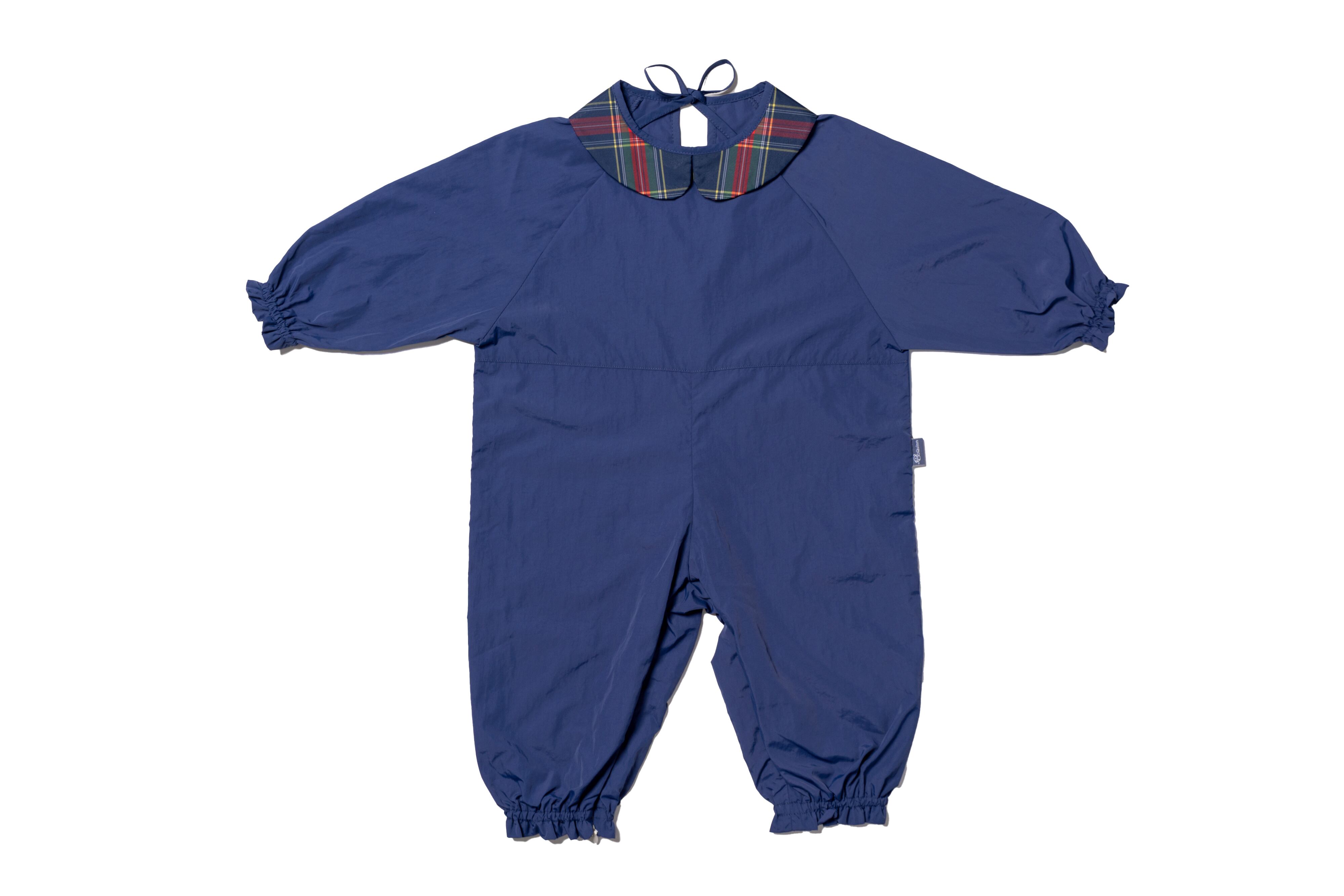お砂場遊びやお絵描き教室など汚れてしまう日はもちろん、ちょっとしたお出掛けにもそのままお使いいただけるよう、ラウンドカラーで品のあるデザインになっています。
